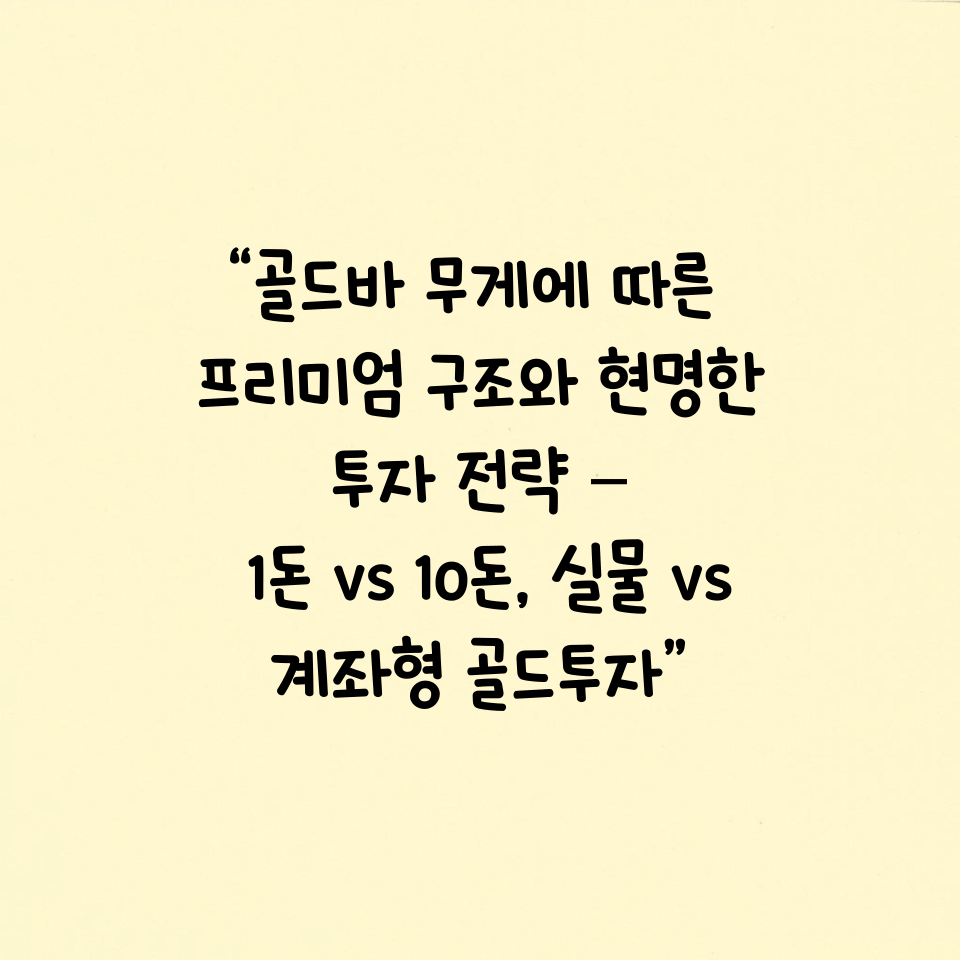 골드바 투자는 단순히 ‘금값이 오를 것이다’라는 기대만으로 이루어져선 안 됩니다. 무게에 따라 달라지는 프리미엄 구조, 내가 언제·어떻게 현금화할 것인가에 대한 전략, 실물 vs 계좌형 중 어떤 방식이 내 투자 목적과 맞는가, 그리고 보유기간과 유동성까지 모두 고려해 봐야 합니다.