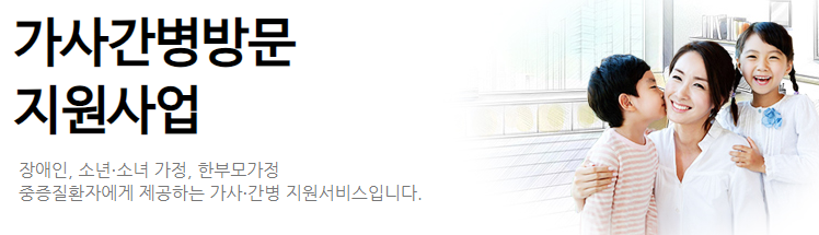 - 가사간병방문 지원사업은 장애인, 소년·소녀 가정, 한부모 가정, 중증질환자 등 도움이 필요한 이들을 대상으로 제공되는 가사·간병 지원 서비스입니다. 이 사업은 「사회서비스 이용 및 이용권 관리에 관한 법률」에 근거하여 추진되고 있습니다.