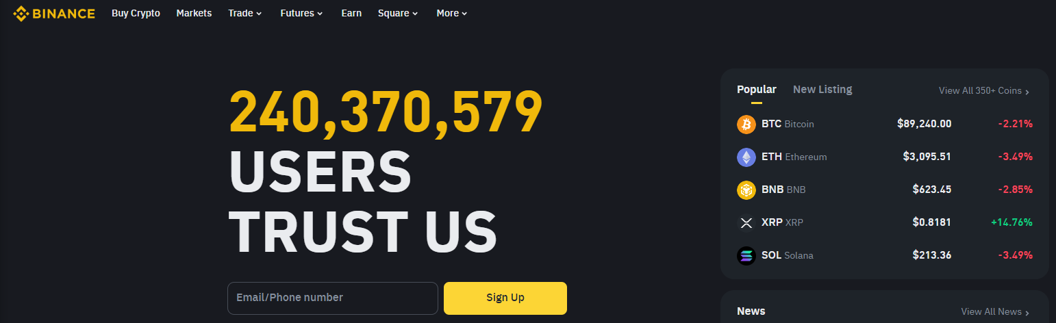 - 특징: 전 세계 최대 거래소로 높은 유동성과 다양한 거래쌍을 지원합니다.