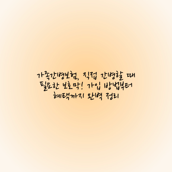 가족간병보험에 가입하는 방법은 생각보다 간단하지만, 몇 가지 핵심 사항을 이해하고 진행하는 것이 중요합니다.