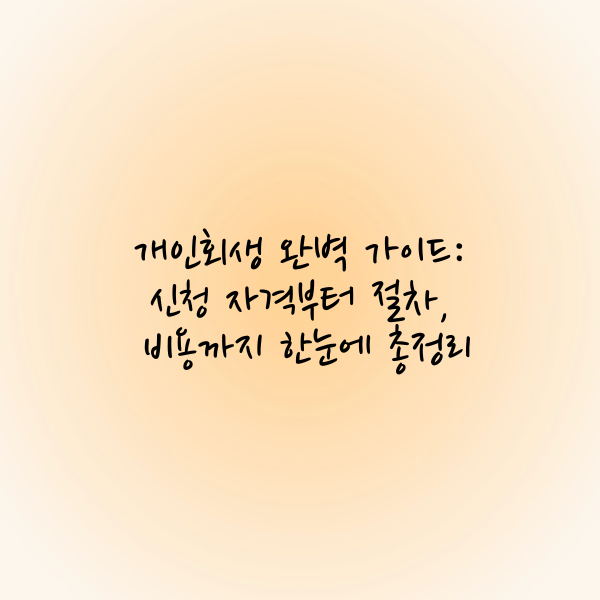 개인회생은 과도한 채무로 인해 경제적 어려움을 겪고 있는 분들에게 재기의 기회를 제공하는 제도입니다. 하지만 신청 자격, 절차, 비용 등에 대한 정보가 복잡하게 느껴질 수 있어, 많은 분들이 신청을 망설이곤 합니다. 이 블로그 글에서는 개인회생의 신청 자격부터 절차, 그리고 관련 비용까지 모든 정보를 총정리하여 누구나 쉽게 이해할 수 있도록 안내해 드리겠습니다. 개인회생을 고려하고 계시다면, 이 글을 통해 보다 명확한 방향을 잡으실 수 있을 것입니다.
