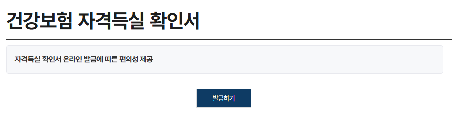 - ‘건강보험 자격득실확인서 발급’ 메뉴 선택