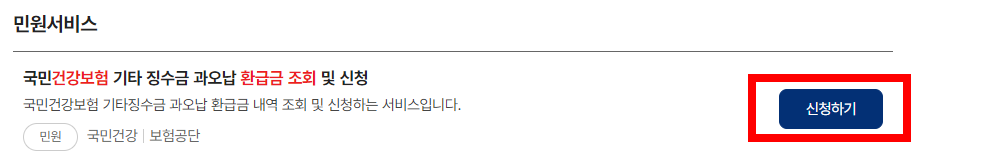 정부 24 건강보험 환급금 조회 및 신청 바로가기