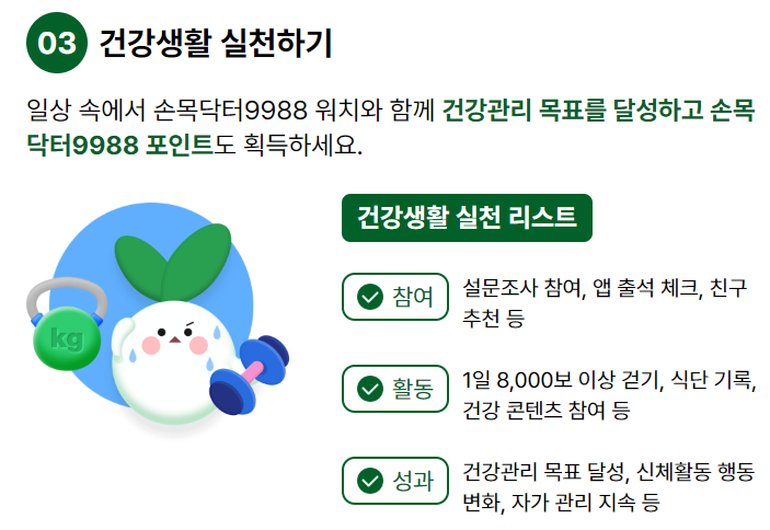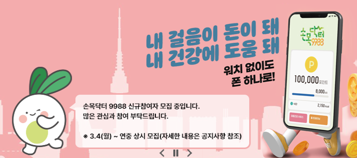 - 건강은 더 이상 선택이 아닌 필수입니다. 이를 깨닫고 있는 2030세대는 건강을 관리하면서 포인트도 쌓을 수 있는 손목닥터 9988에 눈길을 더욱 집중하고 있습니다.