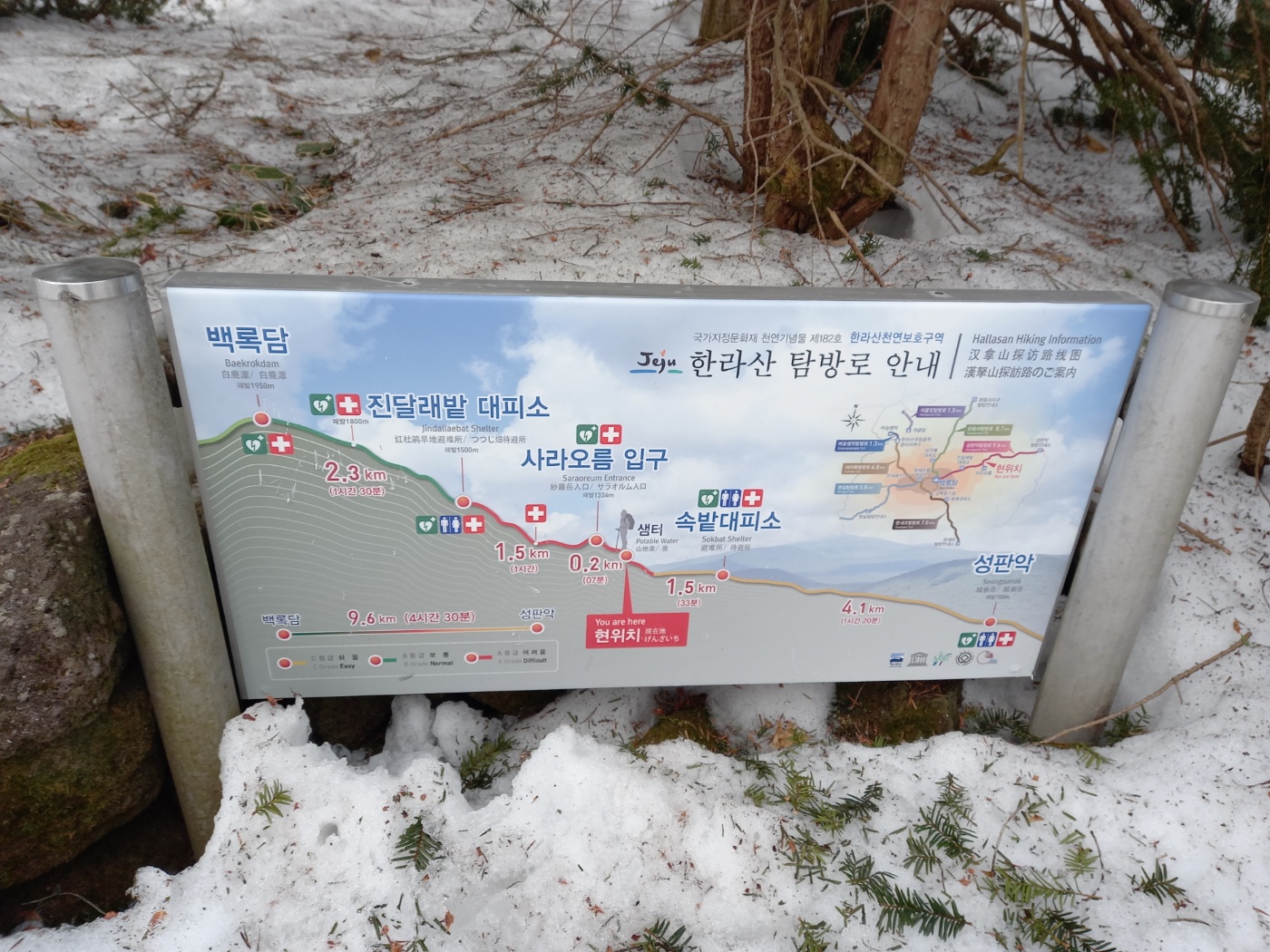 등산코스: 영실 탐방안내소-영실탐방로 입구-병풍바위-노루샘-윗새오름-남벽분기점