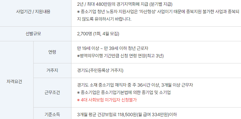- 경기도 소재 중소기업에 재직 중이어야 합니다.