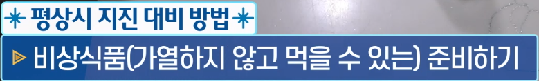 - 지진에 대비하여 비상용품을 준비해 두고 보관 장소와 사용방법을 알아둡니다.
