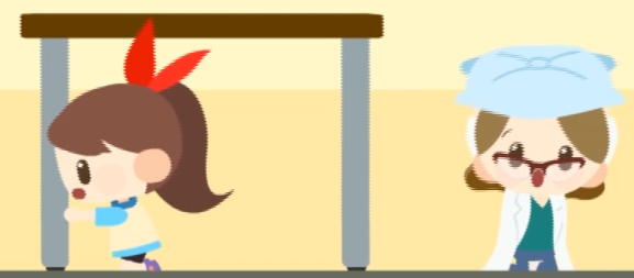 - 학교에 있을 경우 책상 아래로 들어가 책상 다리를 꼭 잡고 흔들림이 멈추면 질서를 지키며 운동장으로 대피합니다.