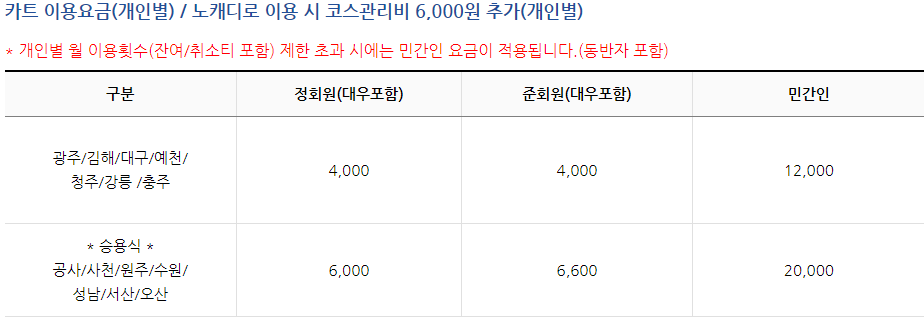 민간인의 경우 평일과 주말, 공휴일 요금이 상이하며, 지역별로도 차이가 있습니다.