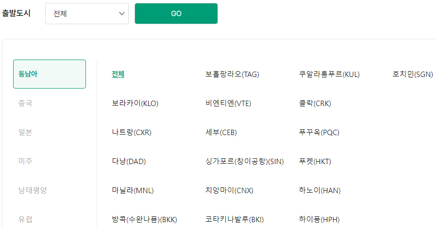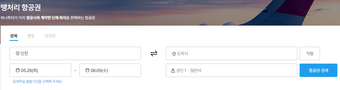 - 나온 땡처리 항공권 중에서 원하는 여행지와 날짜를 검색합니다.