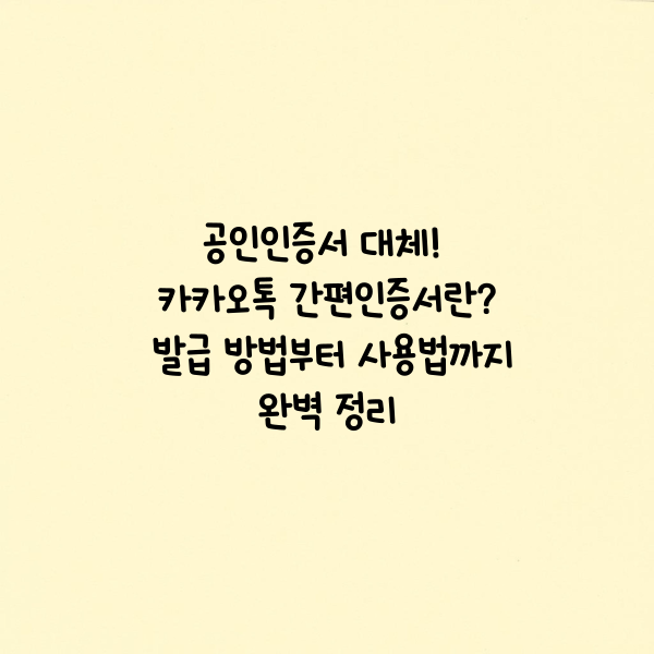 이 글에서는 카카오톡 간편인증서란 무엇인지, 발급 방법, 사용처, 장단점, 갱신 및 삭제 방법까지 A부터 Z까지 모두 설명드립니다. 공인인증서보다 훨씬 쉬운 인증 환경을 찾고 계신다면 이 글이 큰 도움이 될 것입니다.
