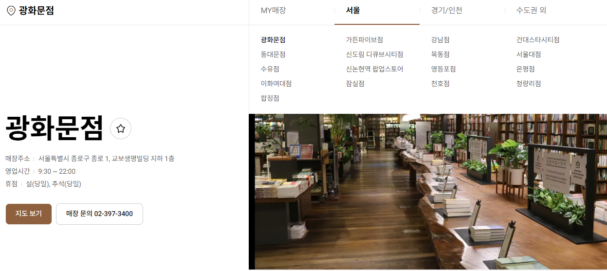 교보문고 웹사이트에서 ‘매장 안내’ 메뉴를 통해 매장별 정보를 확인할 수 있습니다.