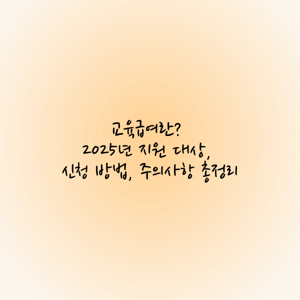 이 글에서는 2025년 교육급여의 신청 방법, 지원 내용, 신청 시 주의사항 등을 구체적으로 소개합니다.