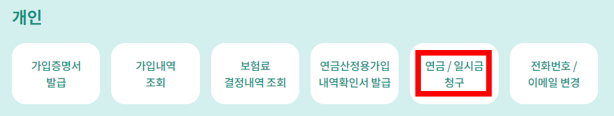 - 로그인 후, 반환일시금 청구 메뉴에서 본인 인증을 거쳐 신청합니다.