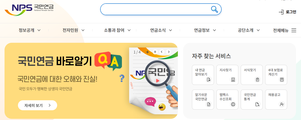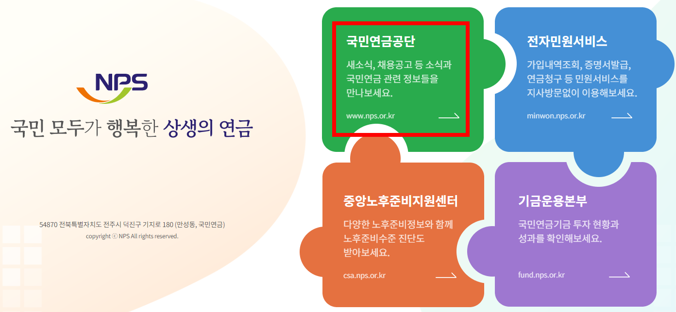 국민연금공단 홈페이지 바로가기