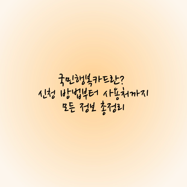 이번 글에서는 국민행복카드의 개념부터 신청 방법, 사용처, 바우처 등록 및 잔액 확인 방법, 그리고 주의사항까지 국민행복카드에 대해 필요한 모든 정보를 상세히 알아보겠습니다.