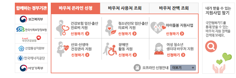 - 국민행복카드 공식 홈페이지 또는 해당 바우처 서비스 홈페이지에서 신청 가능.