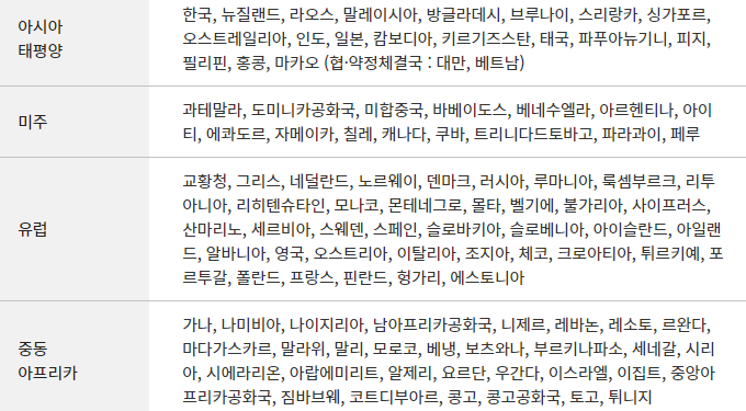 - 미국, 캐나다, 호주, 뉴질랜드 등 북미 및 오세아니아 지역
