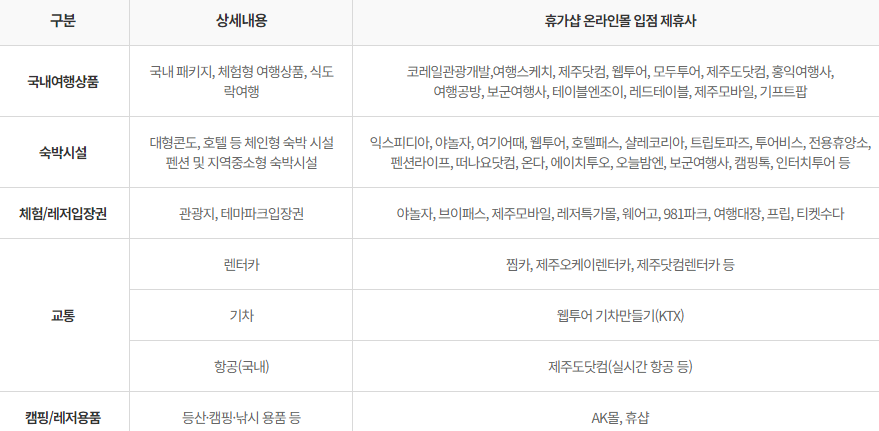휴가샵 온라인몰 개인회원 가입 - 적립 포인트 40만 원 부여 - 휴가샵 온라인몰에서 국내여행 관련 상품 구입 - 휴가 즐기기