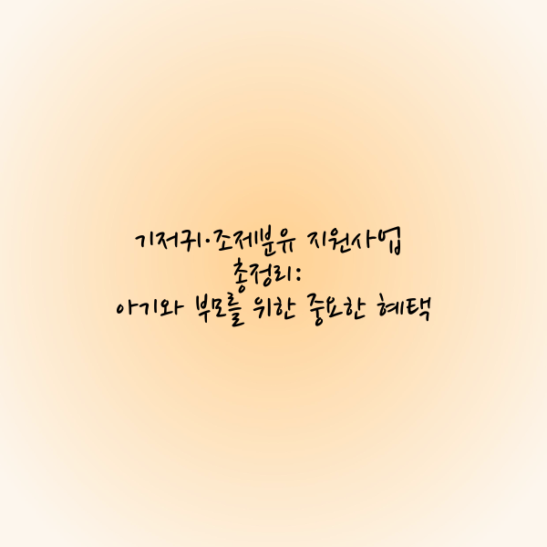 기저귀·조제분유 지원사업은 경제적 어려움을 겪고 있는 가정에 큰 도움이 되는 프로그램입니다. 부모들은 이 혜택을 적극적으로 활용하여 육아의 부담을 덜고, 더 많은 사랑과 보살핌을 아이에게 전할 수 있습니다. 필요한 자격 요건을 확인하고, 신청 절차를 통해 지원 혜택을 꼭 받아보시기 바랍니다.