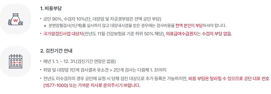 무료 검사 대상자 및 주기