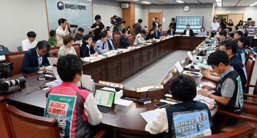 - 근로자위원인 류기섭 한국노총 사무총장은 “복수의 가구 구성원으로 생계를 꾸리는 최저임금 노동자 가구의 생계비는 현재 최저임금 수준보다 훨씬 더 많다”며, “최저임금은 최저임금법이 규정한 저임금 노동자 생활안정의 제도 취지와 목적, 그리고 노동자 생계비가 반영돼야 한다”고 강조했습니다.