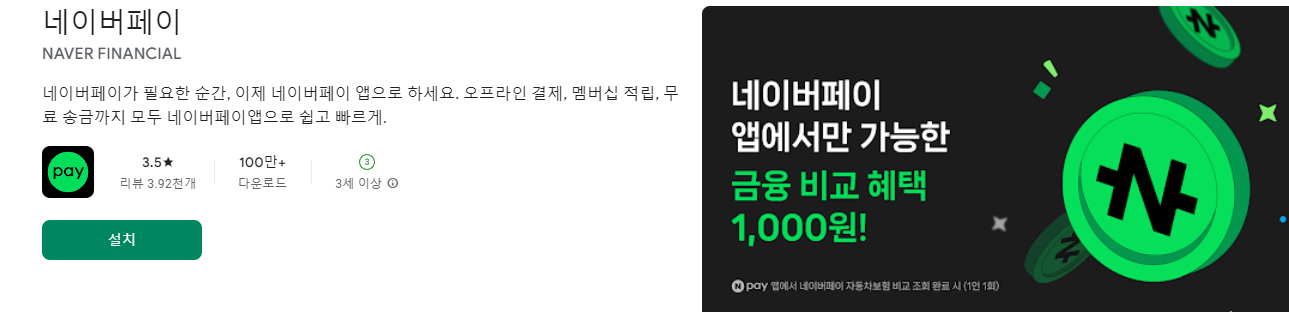 네이버페이 앱 다운로드(안드로이드)