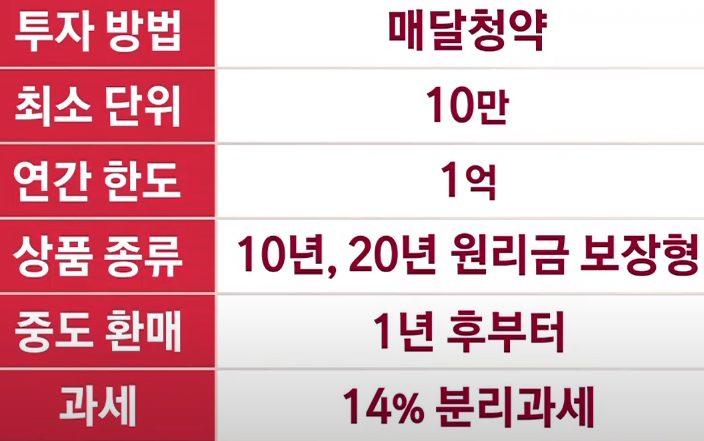 만기 시 보유해야만 각종 혜택 주어진다는 건데 만기가 10년 20년으로 엄청나게 길어 긴 기간 동안 돈이 묶이게 되는 리스크가 있습니다. 급전이 필요하면 중도환매는 가능하나 세제혜택이나 가산금리 등 각종 혜택은 받을 수가 없습니다. 여기에다가 추가로 페널티가 부여될 가능성도 있으며 일단 이 상품에 투자하려면 최대한 만기까지 보유해야 유리합니다.
