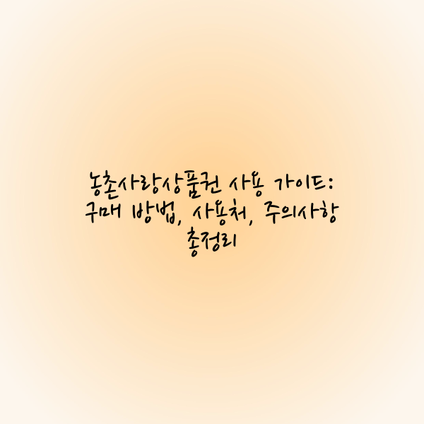 농촌사랑상품권에 대해 알아보세요! 농촌사랑상품권은 농협에서 발행하는 상품권으로, 전국의 농협 계열사와 다양한 가맹점에서 현금처럼 사용할 수 있습니다. 종이와 모바일 형태로 제공되며, 농촌 경제 활성화에 기여하고 소비자들에게 혜택을 제공하는 다목적 상품권입니다. 이 글에서는 농촌사랑상품권의 구매 방법, 사용처, 주요 특징을 구체적으로 안내해 드립니다.