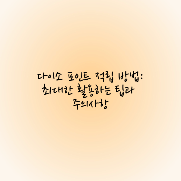 특히, 영수증을 통한 사후 적립과 포인트 적립률이 높은 이벤트를 적극 활용하면 더욱 효율적으로 포인트를 모을 수 있습니다. 다이소를 자주 이용하는 소비자라면, 다이소몰 앱을 설치하고 멤버십에 가입하여 포인트 적립과 함께 다양한 혜택을 놓치지 마세요!