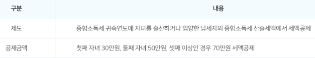 사업자의 자녀에 대해서는 소득공제인 인적공제를 받을 수 있습니다. 이를 정리하면 다음과 같습니다.