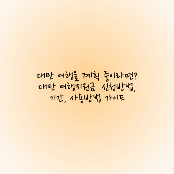대만은 풍부한 문화와 아름다운 자연을 즐길 수 있는 매력적인 여행지입니다. 대만 여행지원금을 활용하여 보다 알뜰하고 특별한 여행을 만끽해 보세요!