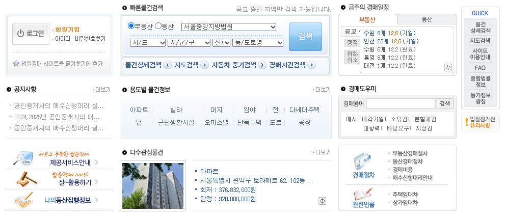 • 이곳에서는 누구나 쉽게 경매 물건을 검색하고 입찰 관련 정보를 확인할 수 있습니다.