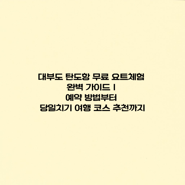 대부도 탄도항 무료 요트체험 완벽 가이드|예약 방법부터 당일치기 여행 코스 추천까지 The title of the page https://happyjju.com