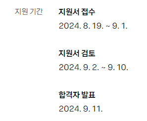 - 지원서 접수: 2024년 8월 19일 ~ 9월 1일