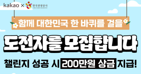 - 상금의 제세공과금은 모두 카카오가 부담하며 완주 인증한 도전자에게는 200만 원 전액 지급됩니다.