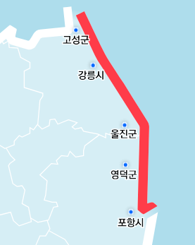 - 위치: 강원 고성군 ~ 경북 포항시