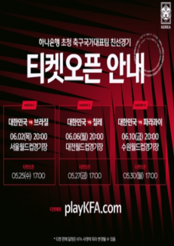 • 예매는 **PlayKFA 공식 플랫폼(웹 및 앱)**을 통해 진행됩니다. 일부 좌석은 하나은행 ‘하나원큐’ 전용 판매가 따로 있으므로 예매 채널을 미리 확인하세요.