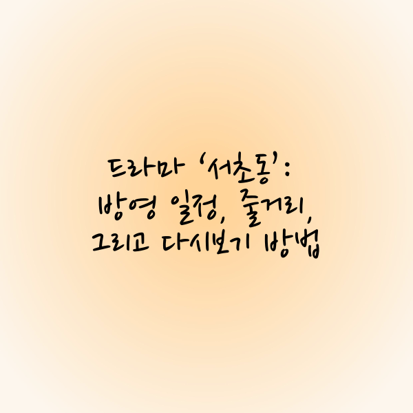 1. 드라마 ‘서초동’ 방영 일정과 줄거리