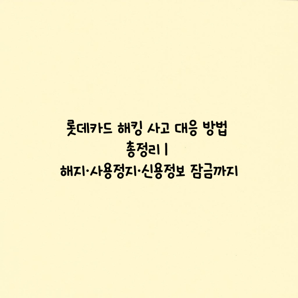 이번 글에서는 롯데카드 해킹 대응 방법을 단계별로 정리했습니다. 단순히 카드 해지만으로 끝나는 것이 아니라, 사용정지 → 비밀번호 교체 → 카드 해지 및 재발급 → 신용정보 잠금까지 이어지는 종합적인 대응 방법을 소개합니다. 실제 후기를 바탕으로 정리했기 때문에 당황하지 않고 빠르게 따라 할 수 있을 것입니다.