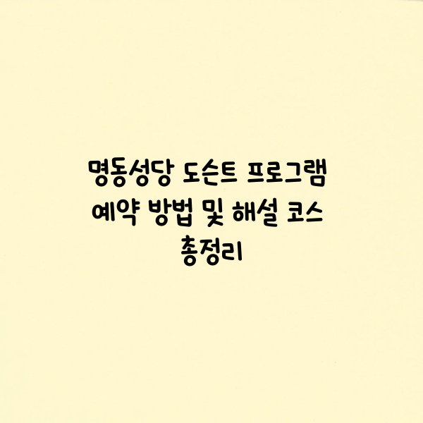 이 글에서는 명동성당 도슨트 프로그램이란 무엇인지, 어떤 방식으로 운영되는지, 예약 방법은 어떻게 되는지 등 전반적인 내용을 자세히 안내해 드립니다. 명동성당 방문을 계획 중이라면 꼭 한 번 체험해보시길 추천드립니다!