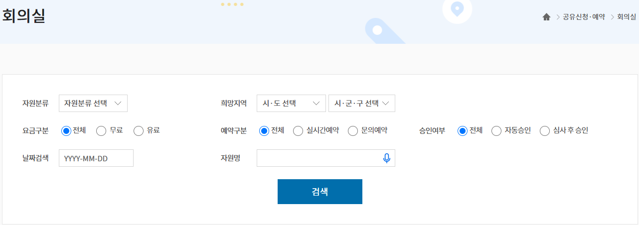 • 공유누리에서는 주차장뿐만 아니라 회의실도 무료로 예약할 수 있습니다.