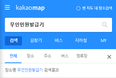 무인민원발급기 지도 검색