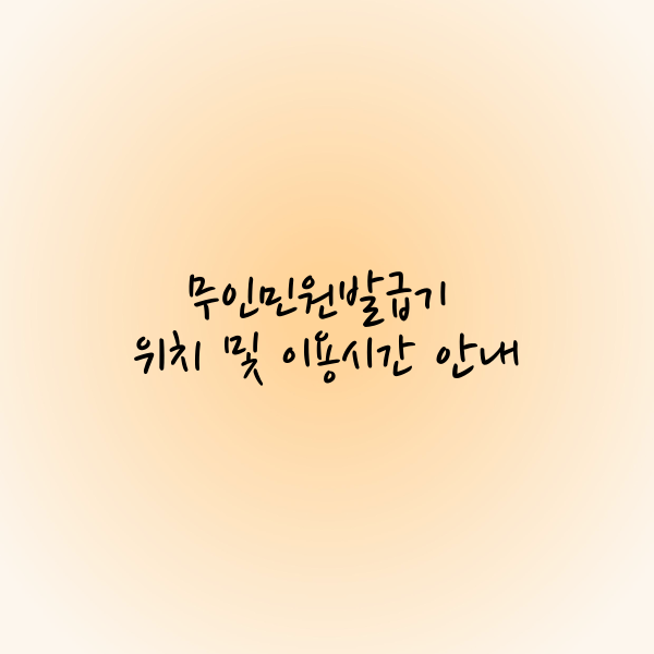- 설치 장소의 운영 시간: 대형마트나 지하철역 등 특정 장소에 설치된 무인민원발급기의 경우, 해당 장소의 운영 시간에 맞춰 이용할 수 있습니다.