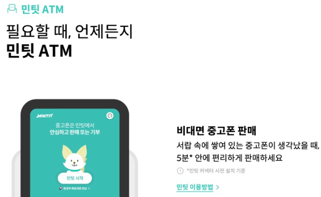 민팃은 중고폰을 간편하게 판매할 수 있는 시스템을 제공하며, 폰의 상태에 따라 등급을 매기고 가격을 책정합니다. 민팃ATM을 통해 중고폰을 넣으면, 기계가 3~5분 내에 액정, 외관, 카메라 등 여러 요소를 검사한 후, A등급에서 D등급까지의 등급을 부여합니다. 이 등급에 따라 책정된 가격에 만족하면, 판매가 완료되며, 금액이 즉시 내 계좌로 입금됩니다.