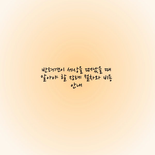 반려견과의 이별은 누구에게나 큰 슬픔을 안겨줍니다. 사랑하는 반려견의 마지막 순간을 잘 보내주는 것은 주인으로서의 마지막 배려일 수 있습니다. 그러나 반려견의 장례 절차를 준비하는 일은 익숙하지 않아 당황스러울 수 있습니다. 이 글에서는 반려견 장례 절차, 비용, 그리고 유의할 사항을 정리해드리며, 구체적인 준비 방법과 팁을 제공합니다.