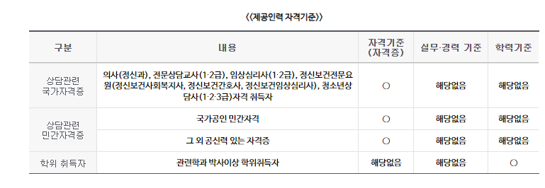 이들 기관은 시·군·구의 지정을 받아야 하며, 상담에 필요한 시설, 장비, 인력을 갖추고 있어야 합니다. 또한, 전문적인 심리 상담 수행 능력과 경험을 갖춘 기관으로 시·군·구에 등록되어 있어야 합니다.