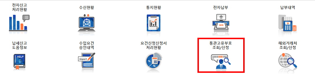 - ‘통관 고유부호 조회’ 메뉴 클릭