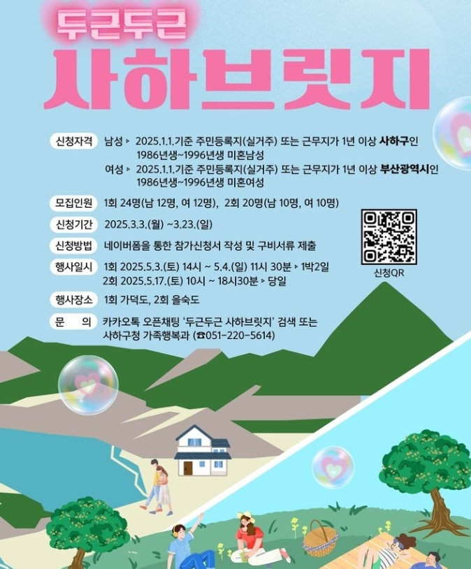 현재 '두근두근 사하브릿지'는 1·2회차 참가자를 모집 중이며, 신청 기한은 3월 23일까지입니다.