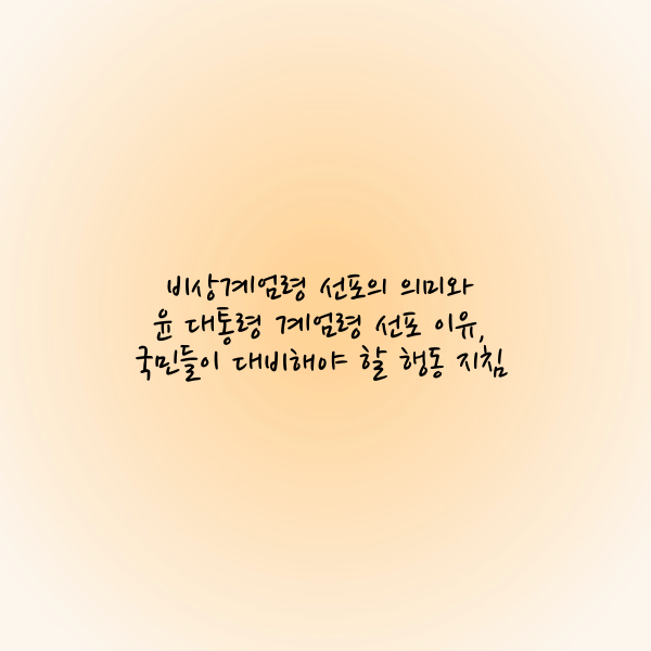 윤석열 대통령의 비상계엄령 선포는 국가적 위기 상황을 극복하기 위한 조치로 이해됩니다. 국민들은 혼란을 최소화하고, 정부 지침을 충실히 따르며, 변화하는 상황에 유연하게 대응해야 합니다.